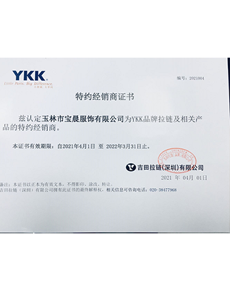 YKK正式授權(quán)經(jīng)銷商-玉林市寶晨服飾有限公司