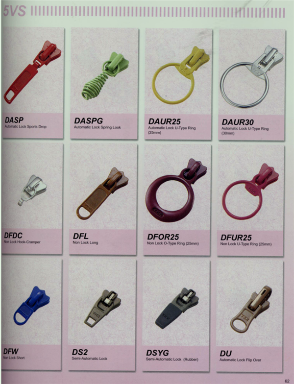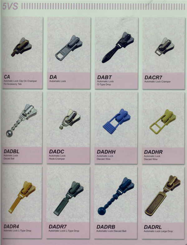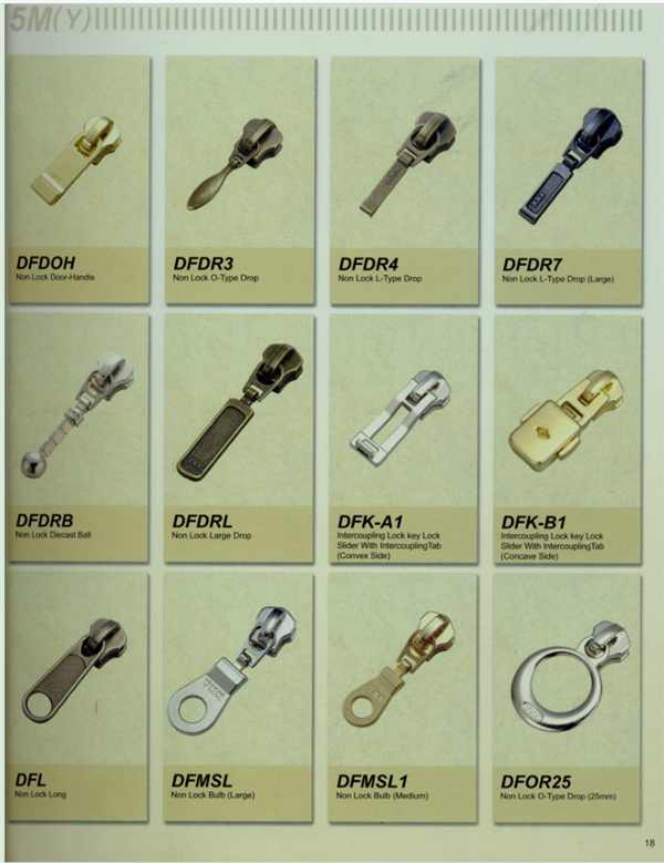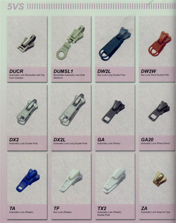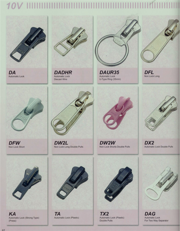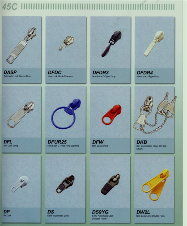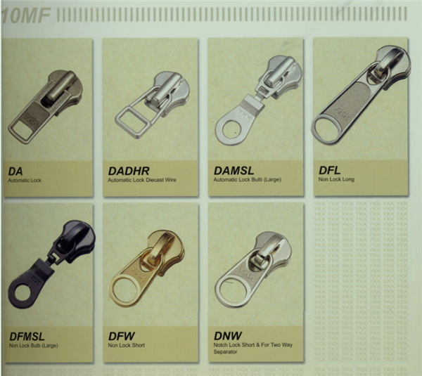 YKK樹脂牙拉鏈及拉頭、YKK金屬牙拉鏈及拉頭、YKK Y牙牛仔系列拉鏈等。